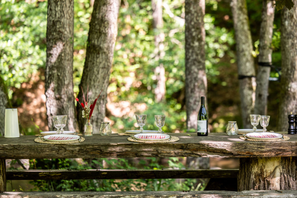 A barbecue and campfire area, complete with a large communal table, has been set up by the river, in one of the most beautiful spots on the estate. A wood-fired Nordic bath offers moments of fun and relaxation. A giant chessboard also invites guests to enjoy some outdoor fun. Finally, a large hammock suspended above the water allows those who wish to relax while listening to the gentle murmur of the river.